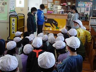朝の活動時に、読み聞かせボランティア「かたくり」の皆さんによる読み聞かせがありました。
