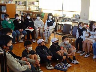 対象学年の児童、そして本を借りにきていた他学年の児童もいっしょに、静かに聞きいっていました。