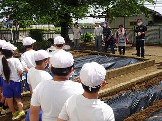 5月17日(水)に、アシストネットのボランティアさんが畝づくりをしてくださったので、今日は苗を植えるのみでした。