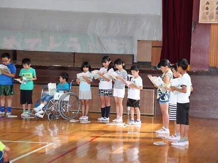 4年生全員で、「一つの花」の音読に挑戦しました。