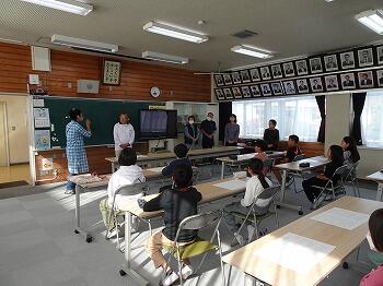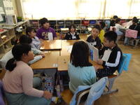 みんなで自己紹介ゲームを行ったりドッジボールを行ったりして仲を深めました。また、休み時間にはクラスの児童から「学校を案内するよ!」の声があり、校舎を案内していました。
