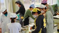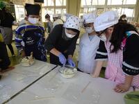 アシストネットの方々にお越しいただき、ご飯のつぶし方やタレの作り方などを優しく教えていただきながら、ふれあい学級の子供たちや給食委員と作りました。たくさん作って他の委員会の児童にも届けると、「おいしかったよ。」とうれしい感想をもらうことができました。