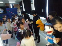 最後には、気持ちを込めて「ありがとうございました。」とあいさつをすることができました。会場を後にし、教室へ戻るときには、様々な人形がお見送りをしていました。子どもたちは、とても名残惜しそうに人形と触れ合っていました。