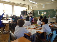 11月のに朝の会で歌う歌は、「ありがとうの花」です。手話をしながら歌っています。2年生は、少し早めに歌に手話をつけて歌っていました。今週からは、1年生と一緒に交流して歌うことになりました。朝から1年生と2年生の教室には、爽やかなあいさつとあかるい歌声が響き渡ります。少しずつ覚えてきた歌や手話も、他学年のお友達と一緒にすることで、お互いに練習の成果を発揮したり、教え合ったりと助け合い学び合う姿が自然と見られました。