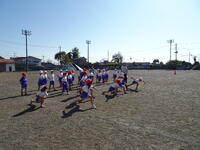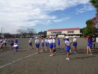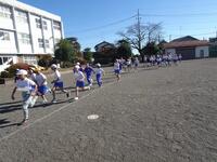 安全を確認し、いよいよ今日から練習開始です。みかもっこタイムに運動保健委員のリードで準備体操をし、5分間走をスタート!