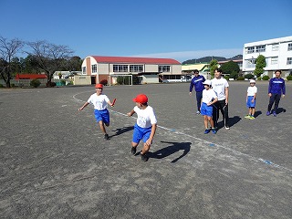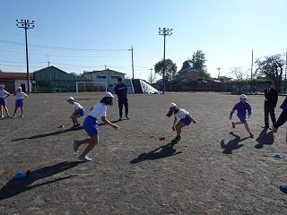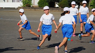 子供たちは、グループ走を行ったり玉集めと走りを組み合わせた運動、リレーを行いました