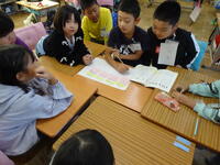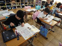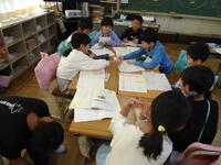 スーパーマーケット見学の体験を生かしながら考えていました。栃木市の副読本や、社会の教科書からも情報を集めて、スーパーマーケットのお客さんを集める工夫を、自分でよく考えながらまとめていました。
