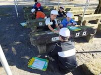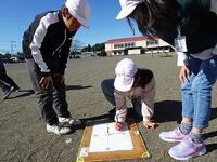 グループで協力しながら、かげの位置を1時間ごとに調べました。方位磁針を使って調べると、三鴨小の校庭の南側は、少し東に傾いています。日なたと日かげの地面の温度も、朝と昼に計測しました。回数を重ねるごとに、手際よく調べることができるようになりました。