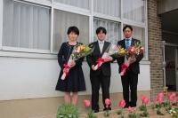 転出される先生方を囲んで、校長室で昼食会、外で記念写真撮影など行いました。