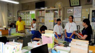 授業補助、保健事務、給食配膳、そして3人とも元放送委員だったので、給食時の特別放送もしてもらいました。