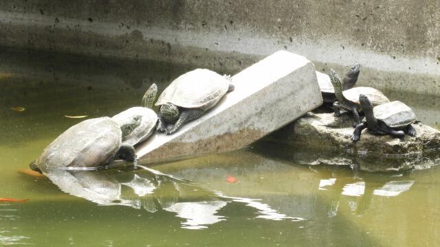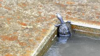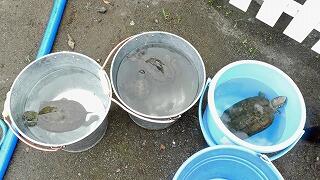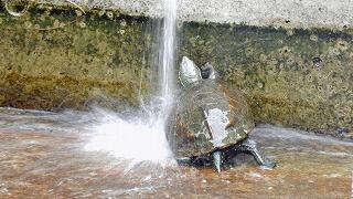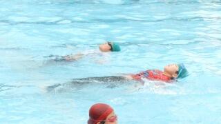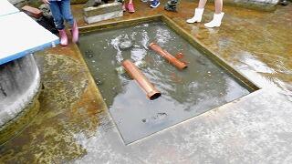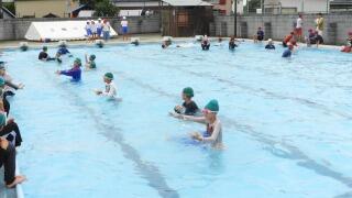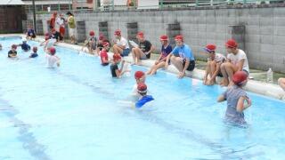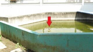 そして、プールサイドにいる友だちが投げたペットボトルを浮力にしてラッコのように浮きます。