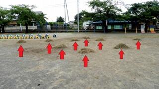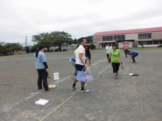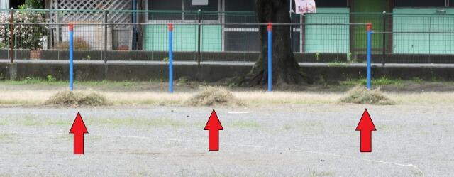 放課後、校庭のロープが補強され、運動会用のマーカーも付けられました。