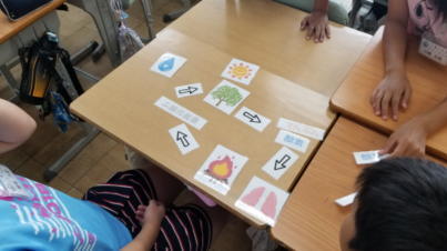 カードを使って、理科の授業で学んだことをつなげてみることにしました。