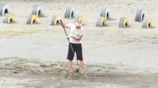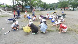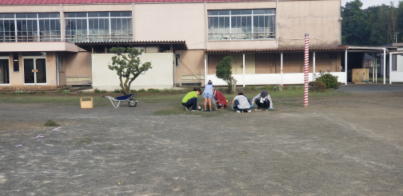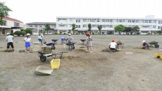 運動会前ということで、トラック上の除草作業を行っていただきました。