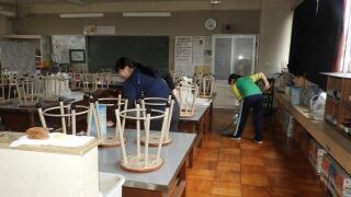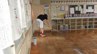 今日は職員出勤日です。職員会議の後、職員で校舎内の清掃をしました。