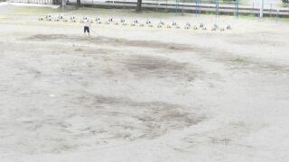 清掃の時間はわずか15分ですが、校庭掃除は優秀なスタッフがそろっています。
