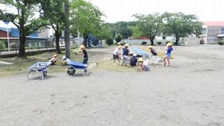 きれいになったトラックで、子供たちは、気持ちよく走ることができます。