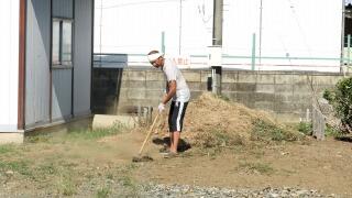 草と土を振り分ける作業も大変でしたが、短時間で雑草の山をきれいにしてくれました。