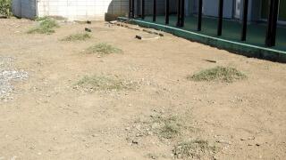 技能員の尾林さんの働きで、雑草の山が3つから9つに増えました。