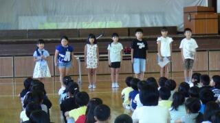 全校合唱の後、2年生がレオレオニ作『スイミー』の音読を発表してくれました。