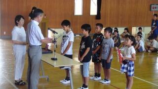 音読発表会の後、「歯と口の健康週間」ポスター、作文、標語、よい歯の児童、男女共同参画標語コンテストの表彰がありました。