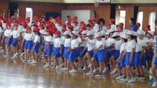 5,6年生の踊りを見て、初めて踊る4年生も意欲を燃やしています。