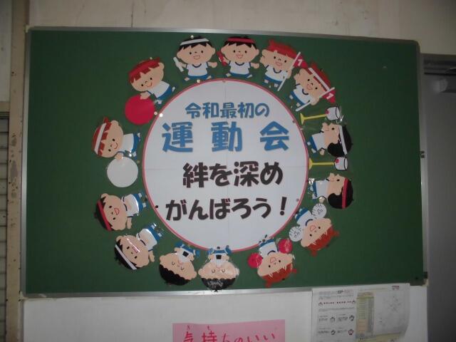 西昇降口の掲示板です。運動会ムードが漂い始めました。