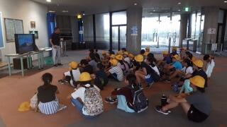 海浜自然の家に着きました。オリエンテーションを受けています。
