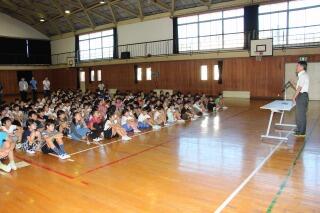 4時間目、横浜税関の方々がおみえになり、全校児童を対象に「薬物乱用防止教室」が行われました。