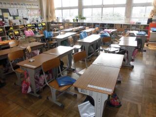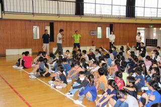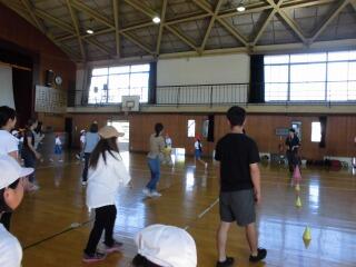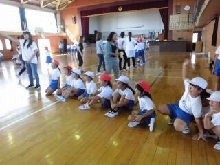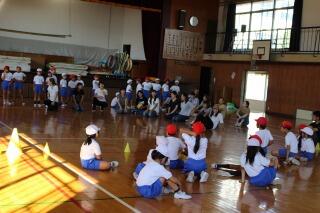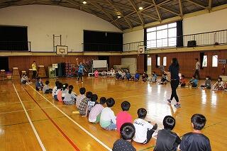 子どもたちがいすを体育館から外に出したぐらいです。