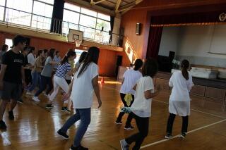 今日、衣装もつけて体育館で練習をしました。