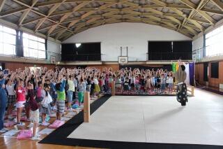 開会式、閉会式、ギブミーアップ体操、よさこい藤岡の練習を行いました。