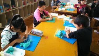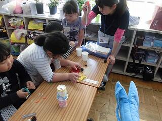 子どもたちもよく知っている「はらぺこあおむし」に出てくる果物の単語を使って、楽しく活動することができました。