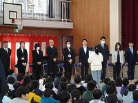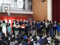 3月29日(金)、9名の教職員の離任式を実施しました。涙雨の空模様の中、卒業生を含む全学年の子供たちが式に参加し、先生方との別れを惜しむ涙涙の離任式となりました。
