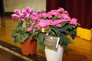 今回寄贈していただいた花はシクラメンとプリンセチアというポインセチアを改良したピンクの葉色主体の植物です。