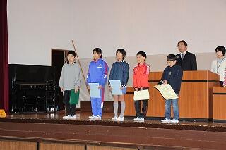 始業式では、学校長の話の後、各学年代表児童の決意発表があり、式の後、表彰が行われました。