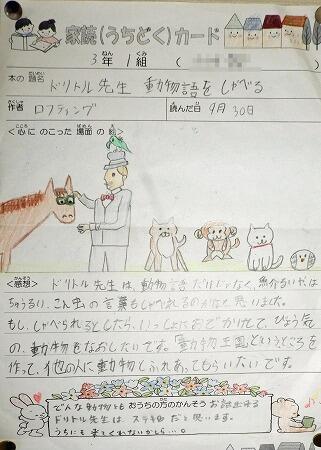廊下の掲示物より(家読カード3,4年生)