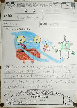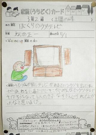 廊下の掲示物より(家読カード1,2年生)
