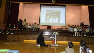 校歌斉唱の後各学年の発表です。