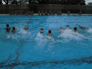 三鴨小は泳ぎの苦手な子のための水泳教室「いるか教室」を設けています。