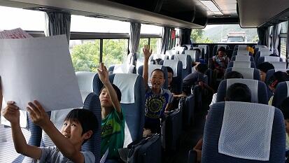 車中の様子。校外学習や宿泊学習で学んだことを問題に。