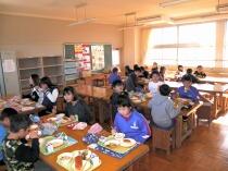 初日の今日は、ふれあいグループごとに分かれて交流給食を行いました。