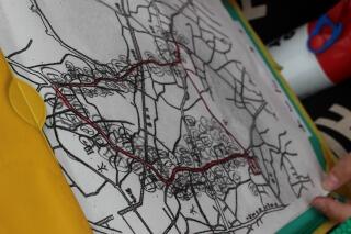 鉛筆を片手に出発!さっそく、駐車場を見つけ、書き込む子どもたち。