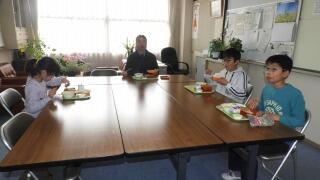 とちぎケーブルテレビさんと、FMくららさんが5年生の給食の様子を取材にきました。