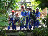 ・とちぎ花センターで、ちょこっとボランティアの保護者の方達が、手を振って迎えてくれました。