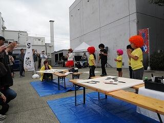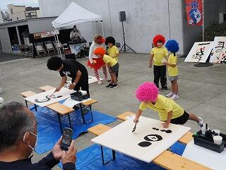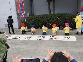 メールで募集をしましたが,その中のイベントの1つとして,三鴨小の学校運営協議会でもお世話になっている己書公認道場師範の上岡太さんとの「己書パフォーマンス」に,本校児童5名が参加してきました。
