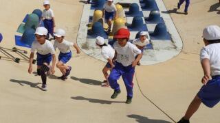 今日は1年生立ち幅跳び、2年生鉄棒とけんけんぱ、3,4年生紅白の玉投げ、5,6年生持久走でした。