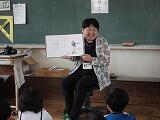 朝の読み聞かせ。お話に聞き入る子どもたちの様子です。