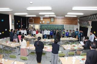先生方の入場は6年生がエスコートしてくれました。軽食もみな手作りです。