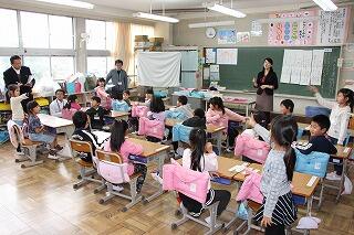 5時間目、1年1組で国語の単元「しらせたいな、見せたいな」の研究授業が行われました。